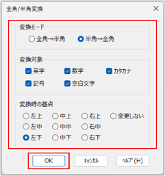 全角文字を半角に変換するか、半角文字を全角に変換するかを選択します。 |
