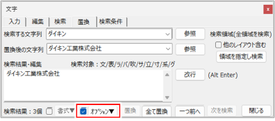 [文字]ダイアログの下に[置換オプション]が表示されます。