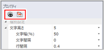 [プロパティ]の項目は、文字配置時の[コマンドプロパティ]の項目と同様です。詳しくは、以下を参照してください。