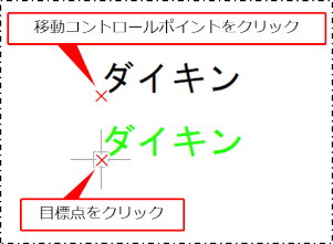 (移動コントロールポイント)をクリックし、移動先の目標点をクリックします。