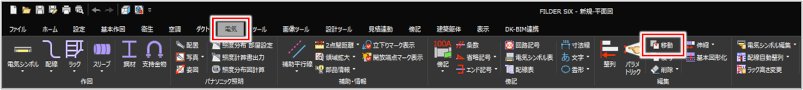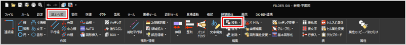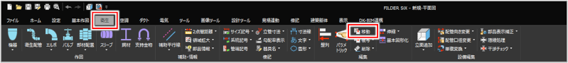 [基本作図]タブ>[移動] [衛生]タブ>[移動] [空調]タブ>[移動] [ダクト]タブ>[移動] [電気]タブ>[移動] [建築躯体]タブ>[移動] |