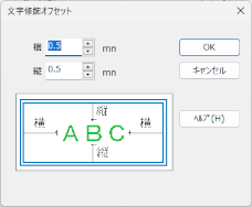 文字と文字の間隔をmm単位で入力します。 |