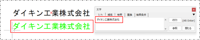 クリックした文字列が[文字]ダイアログの入力欄に表示され、同じ文字列がマウスカーソルの位置に仮表示されます。