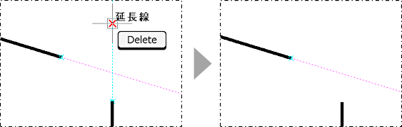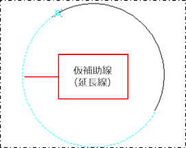 直線形状の図形や配管の延長線方向に表示されます。円弧の場合は、円の欠けた部分を補完する円弧が表示されます。