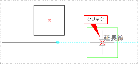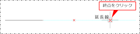座標アシストの[延長線]が表示されている状態で直線の終点をクリックします。