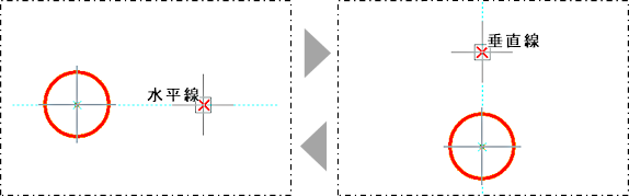 仮補助線は、カーソルを上下に移動すると垂直線になり、左右に移動すると水平線になります。