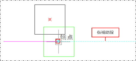 端点から仮補助線が表示されます。