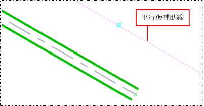 仮補助線上にカーソルを移動し、[平行線]と表示されたらクリックします。