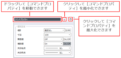 [コマンドプロパティ]には、実行中のコマンドの設定項目が表示されます。