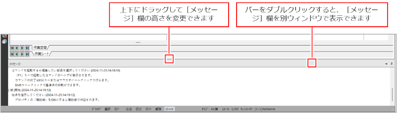 [メッセージ]欄には、操作の指示やアドバイスが表示されます。
