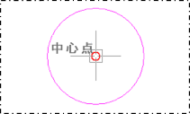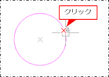 円・円弧・楕円・楕円弧の中心点にカーソルを近づけると、「中心点」と表示されます。クリックすると、中心点を正確に指示できます。 ショートカットメニュー:[中心点] |
