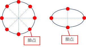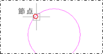 円・円弧の中心を基点にした水平・垂直・45°方向の円周上と、楕円・楕円弧の中心を基点とした水平・垂直方向の円周上(ただし、楕円・楕円弧の節点は楕円の角度に準じます)にカーソルを近づけると、「節点」と表示されます。クリックすると、節点を正確に指示できます。 ショートカットメニュー:[節点]