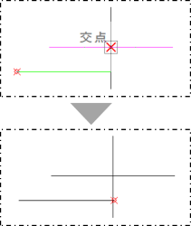 2つの図形が交わる点や接する点にカーソルを近づけると、「交点」と表示されます。クリックすると、交点を正確に指示できます。 ショートカットメニュー:[交点] |