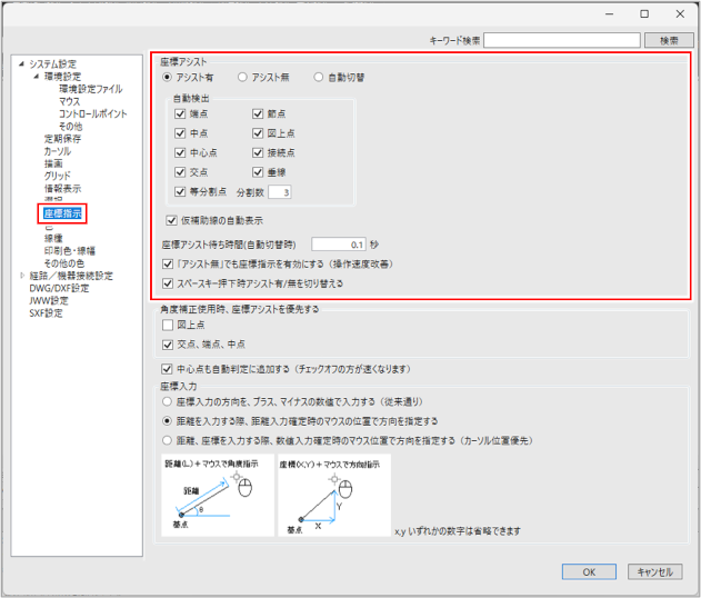 [システム設定]の[座標指示]をクリックし、動作を設定します。