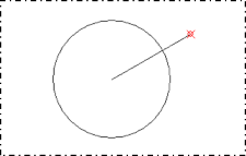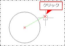 [座標指定(図形単位)]ツールバーの使用例として、円の中心点から線を作図します。