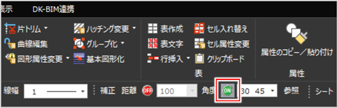 以降、図形の作図時など、角度が指定の値に補正されます。