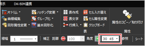 角度補正を有効にすると、図形の作図などで線分の角度が指定の値に補正されます。