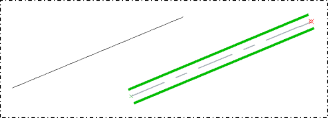 距離補正を有効にすると、図形の作図などで線分の長さなどが指定の値を単位に補正されます。例えば補正の単位が「100」の場合、作図できる線分の長さは100、200、300…というように、100ごとの値になります。