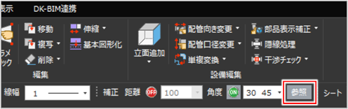共通項目ツールバーの[角度]の[参照]ボタンをクリックします。
