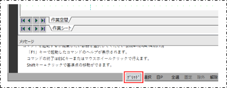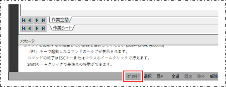 グリッドは、図面上に格子状に点を表示したもので、作図するときに作図位置をそろえる目安として使用します。