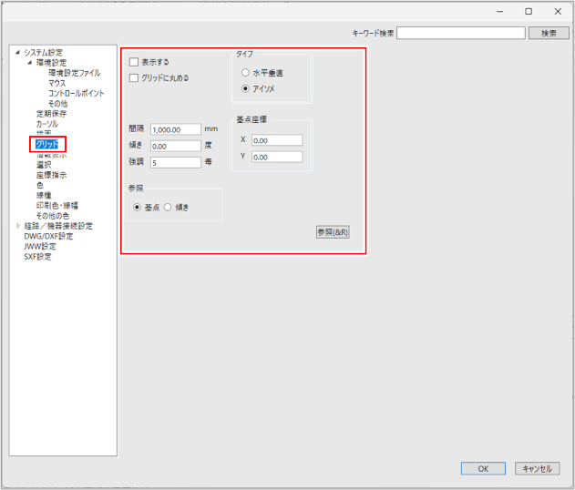 [システム設定]の[グリッド]をクリックし、項目を設定します。