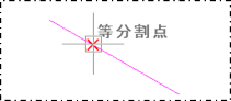 線分を等分する点にカーソルを近づけると、「等分割点」と表示されます。クリックすると、等分割点を正確に指示できます。 ショートカットメニュー:[等分割点] ショートカットメニューの場合は、右クリックした位置に最も近い等分割点が指示されます。 何等分の位置で座標アシストを表示するかは、[システム設定]の[座標指示]の[分割数]で設定します。詳しくは、以下を参照してください。 |