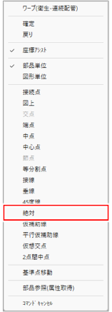線や配管などの作図コマンド実行中に、絶対(点)・仮想交点・2点間中点を指定します。