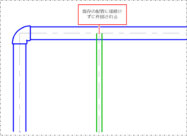 カーソルの位置が指定されます。これにより、既存の配管に接続せずに、配管を重ねて作図できます。