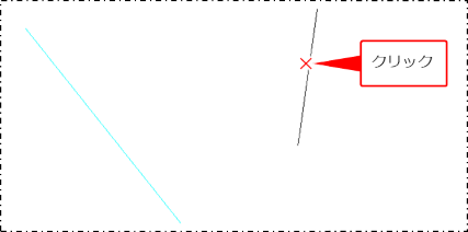 ここでは例として、[線]コマンド実行中に、2本の線分の延長線上にある仮想交点を指定します。
