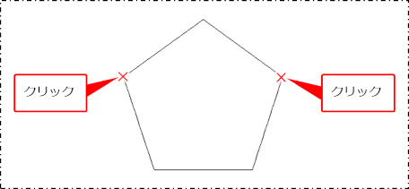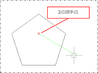ここでは例として、[線]コマンド実行中に、五角形の2つの頂点の中間点を指定します。