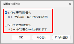 レイヤ優先の場合は[レイヤの表示順を優先]、シート優先の場合は[シートの表示順を優先]を選択します。