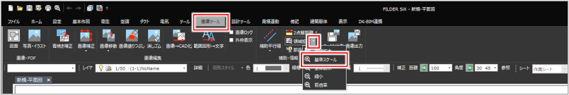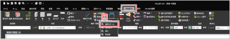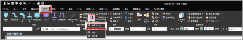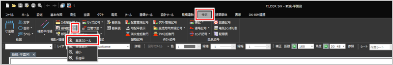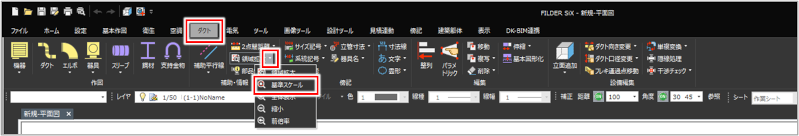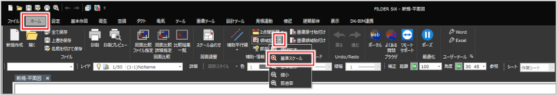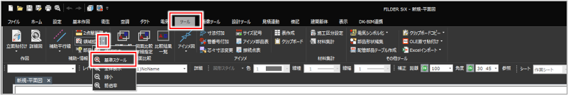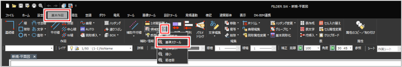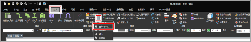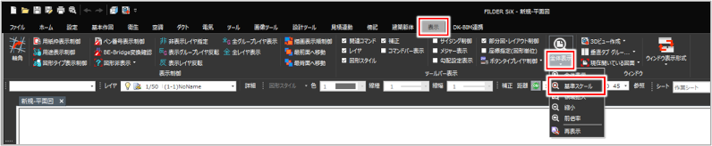 [ホーム]タブ>[領域拡大]プルダウンメニュー>[基準スケール] [基本作図]タブ>[領域拡大]プルダウンメニュー>[基準スケール] [衛生]タブ>[領域拡大]プルダウンメニュー>[基準スケール] [空調]タブ>[領域拡大]プルダウンメニュー>[基準スケール] [ダクト]タブ>[領域拡大]プルダウンメニュー>[基準スケール] [電気]タブ>[領域拡大]プルダウンメニュー>[基準スケール] [ツール]タブ>[領域拡大]プルダウンメニュー>[基準スケール] [画像ツール]タブ>[領域拡大]プルダウンメニュー>[基準スケール] [傍記]タブ>[領域拡大]プルダウンメニュー>[基準スケール] [建築躯体]タブ>[領域拡大]プルダウンメニュー>[基準スケール] [表示]タブ>[全体表示]プルダウンメニュー>[基準スケール] |