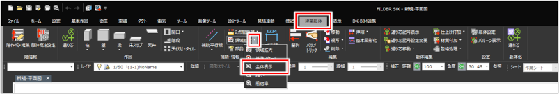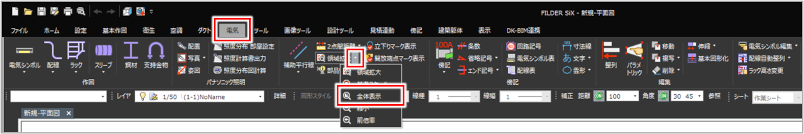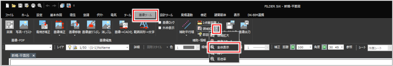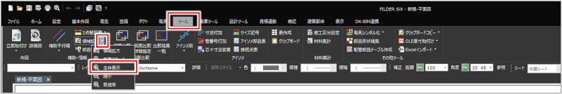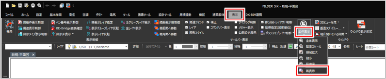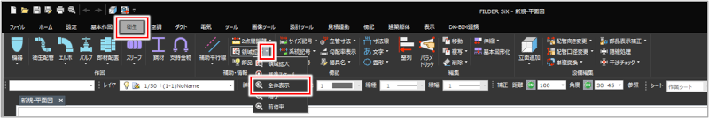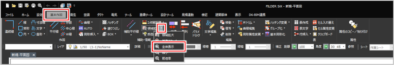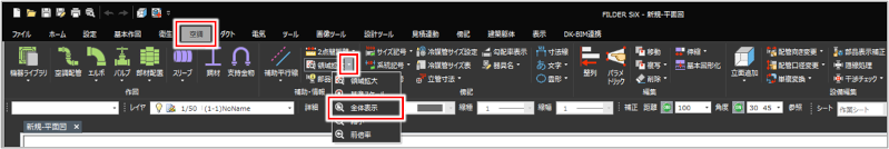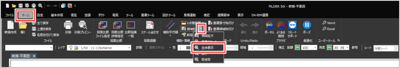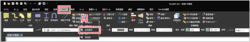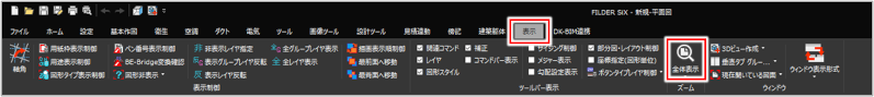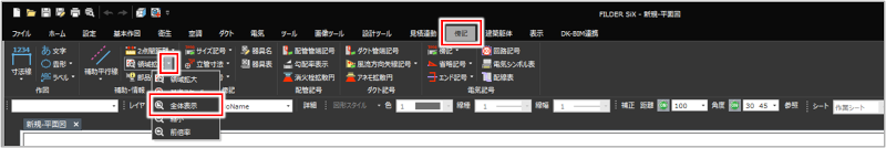 [ホーム]タブ>[領域拡大]プルダウンメニュー>[全体表示] [基本作図]タブ>[領域拡大]プルダウンメニュー>[全体表示] [衛生]タブ>[領域拡大]プルダウンメニュー>[全体表示] [空調]タブ>[領域拡大]プルダウンメニュー>[全体表示] [ダクト]タブ>[領域拡大]プルダウンメニュー>[全体表示] [電気]タブ>[領域拡大]プルダウンメニュー>[全体表示] [ツール]タブ>[領域拡大]プルダウンメニュー>[全体表示] [画像ツール]タブ>[領域拡大]プルダウンメニュー>[全体表示] [傍記]タブ>[領域拡大]プルダウンメニュー>[全体表示] [建築躯体]タブ>[領域拡大]プルダウンメニュー>[全体表示] [表示]タブ>[全体表示] |