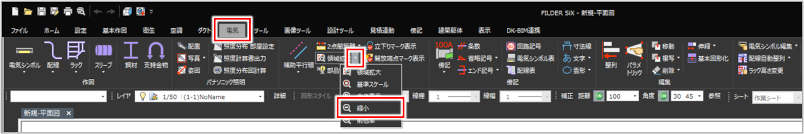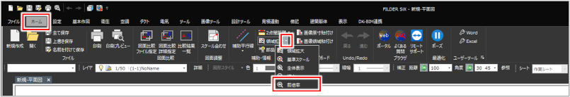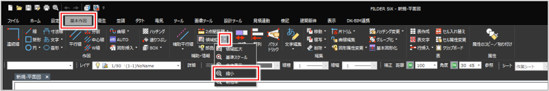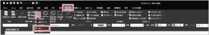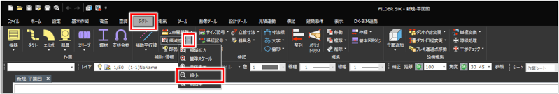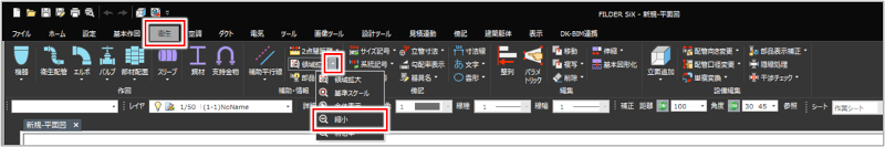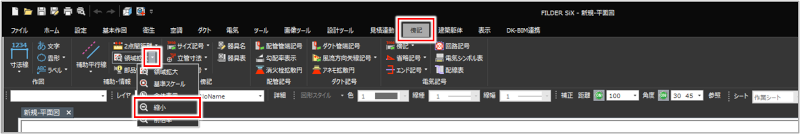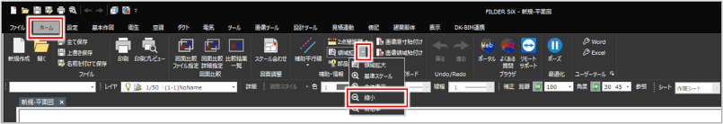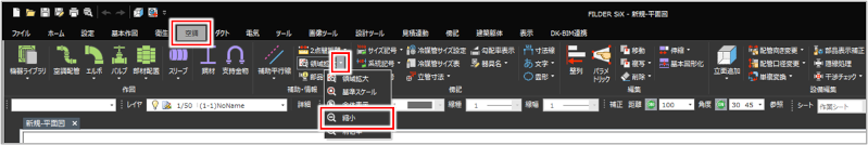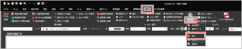 [ホーム]タブ>[領域拡大]プルダウンメニュー>[縮小] [基本作図]タブ>[領域拡大]プルダウンメニュー>[縮小] [衛生]タブ>[領域拡大]プルダウンメニュー>[縮小] [空調]タブ>[領域拡大]プルダウンメニュー>[縮小] [ダクト]タブ>[領域拡大]プルダウンメニュー>[縮小] [電気]タブ>[領域拡大]プルダウンメニュー>[縮小] [ツール]タブ>[領域拡大]プルダウンメニュー>[縮小] [画像ツール]タブ>[領域拡大]プルダウンメニュー>[縮小] [傍記]タブ>[領域拡大]プルダウンメニュー>[縮小] [建築躯体]タブ>[領域拡大]プルダウンメニュー>[縮小] [表示]タブ>[全体表示]プルダウンメニュー>[縮小] |