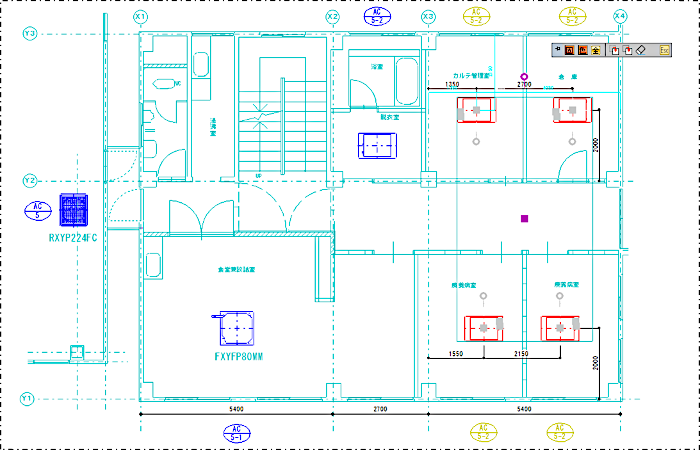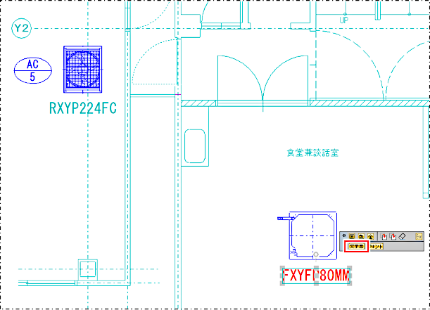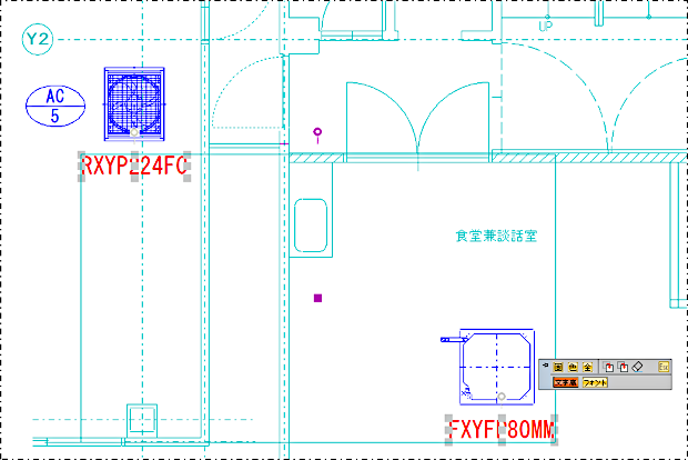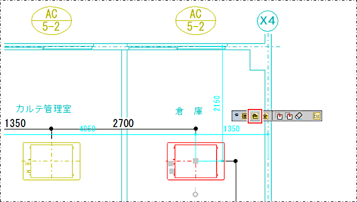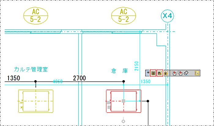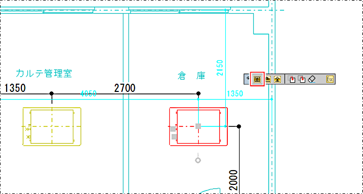 選択した図形と同じ属性・色の図形(この例では黄色の機器)だけが選択できる状態になります。