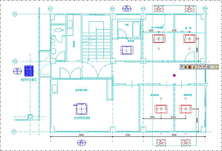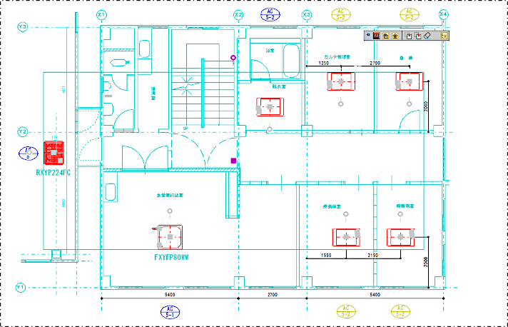 選択した図形と同じ属性・色の図形を選択できます。ここでは、例として黄色で作図されている機器だけを選択します。