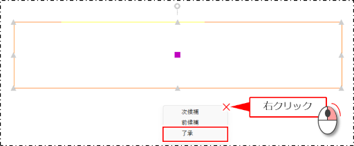 目的の図形が黄色表示になったら、右クリックし、表示されるメニューから[了承]をクリックします。