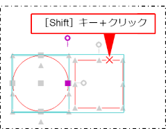 このように、最初にクリックした図形は選択されたままで、後にクリックした図形も選択されます。