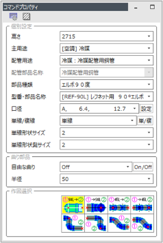 ワープした図形と同じコマンドが起動し、ワープした図形と同じ設定で[コマンドプロパティ]が表示されます。