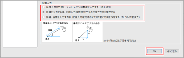 座標の入力方法を選択し、[OK]ボタンをクリックします。
