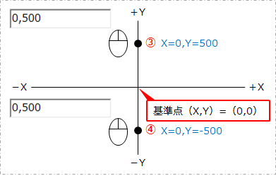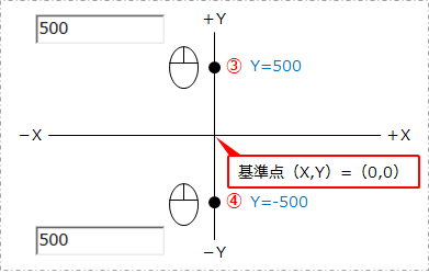 ③マウスをY軸の+方向に配置:基準点からX軸+方向に0、Y軸方向に500