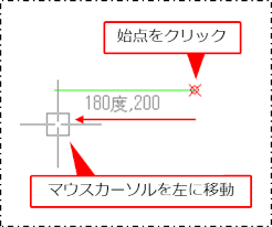始点の位置をクリックし、作図する方向にマウスカーソルを移動します。