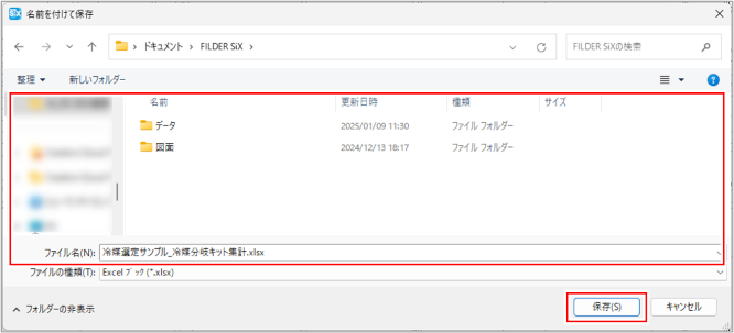 保存先とファイル名を設定し、[保存]ボタンをクリックします。
