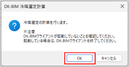 DK-BIMクライアントが起動していないことを確認し、[OK]ボタンをクリックします。