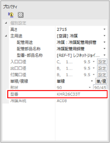 - レフネットジョイントをクリックし、[プロパティ]で型番を確認します。