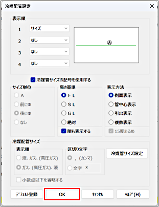 冷媒管に表示するサイズ記号の高さ基準を選択します。 |