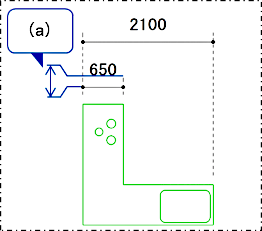補助線の基点と端点とのオフセット間隔を、プロッタ出力時の実寸で入力します。 |