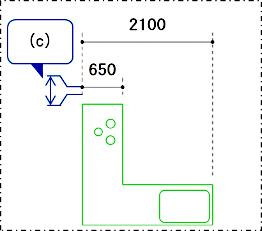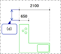 寸法線と寸法値との間隔を、プロッタ出力時の実寸で入力します。 |