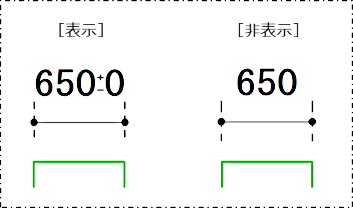 寸法値の3桁ごとに「 , 」(カンマ)を表示する場合はチェックを付けます。 |