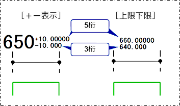 許容差の小数点以下の表示桁数を[上限桁数][下限桁数]に入力します。 |